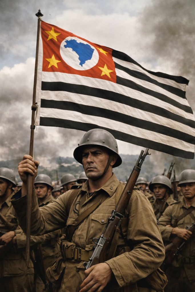 Soldados paulistas durante a Revolução Constitucionalista de 1932, movimento que marcou a luta do estado de São Paulo por uma nova Constituição para o Brasil